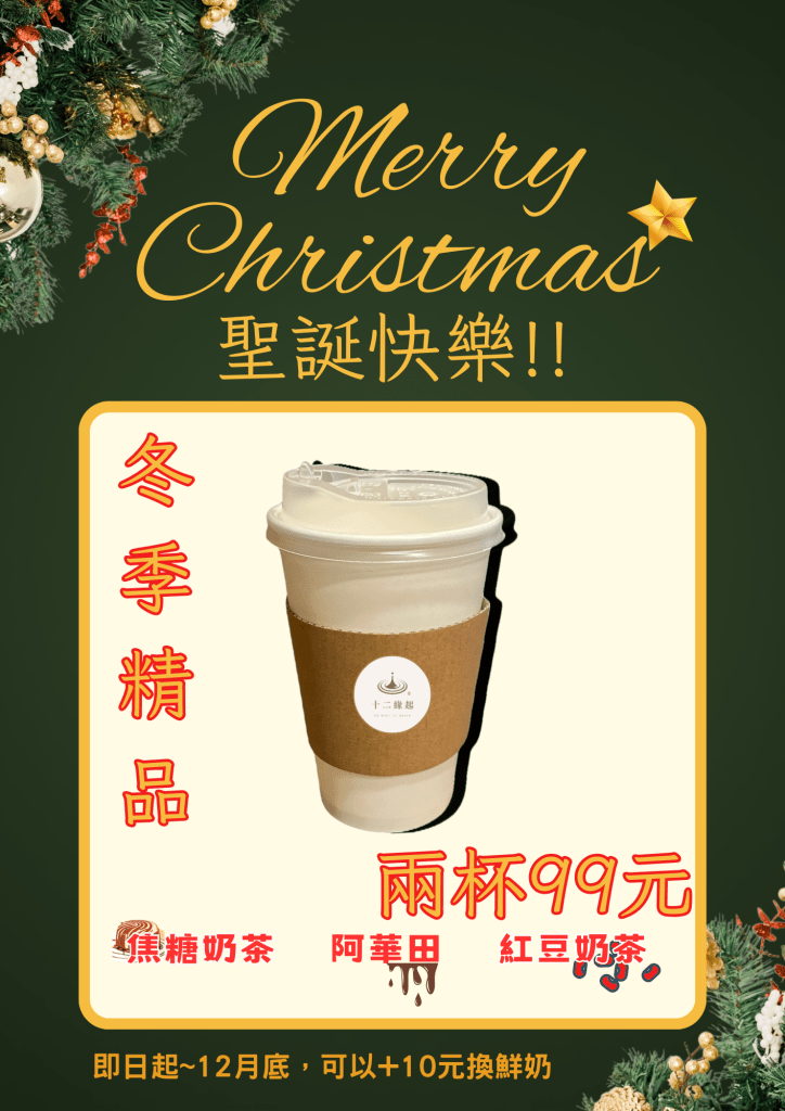 [十二緣起]聖誕節活動!!指定飲品兩杯99元!